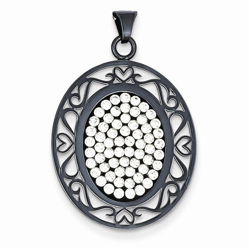 Sterling Silver Black Ceramic White Swarovski Elements Oval Pendant