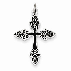 Sterling Silver Black Enameled Cross Pendant