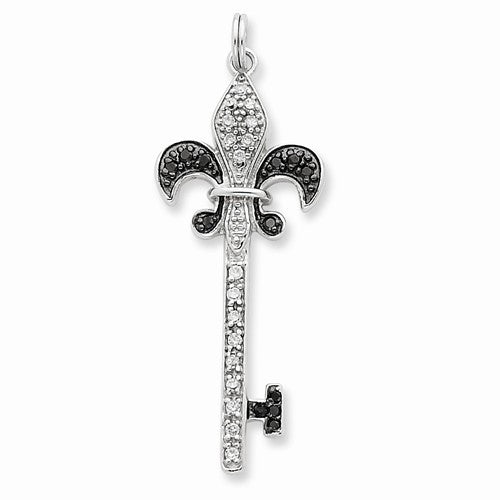 Sterling Silver Black & White CZ Fleur de Lis Key Pendant
