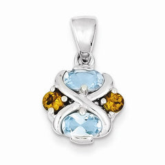 Sterling Silver Blue Topaz and Citrine Pendant