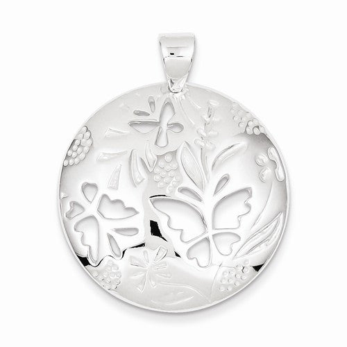 Sterling Silver Butterfly Cut-outs Round Pendant