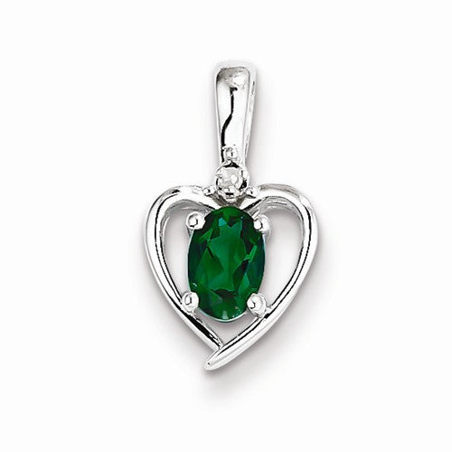 Sterling Silver Created Emerald & Diamond pendant, Exquisite Pendants for Necklace