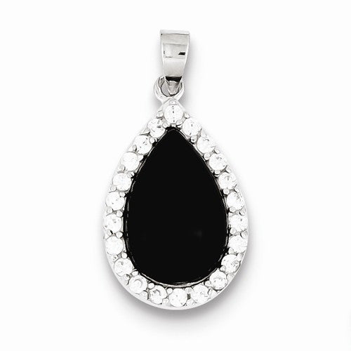 Sterling Silver CZ and Onyx Pendant, Pendants for Necklace