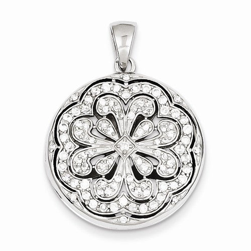 Sterling Silver CZ Circle w/ Flower Design Locket