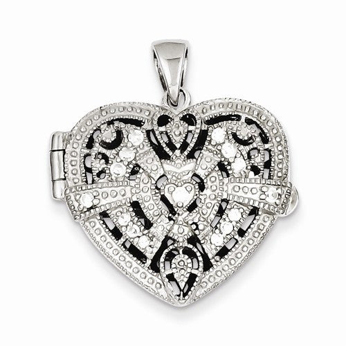 Sterling Silver CZ Design Heart Locket