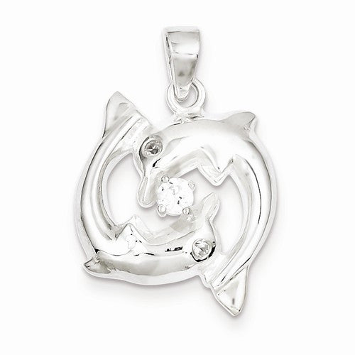Sterling Silver CZ & Dolphins Pendant, Pendants for Necklace