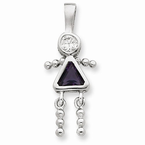 Sterling Silver CZ & February Glass Girl Pendant, Pendants for Necklace