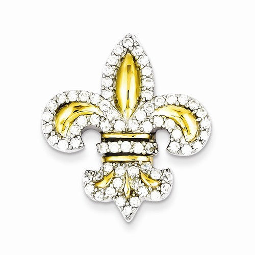 Sterling Silver CZ Fleur de Lis w/ Flash Gold-Plated Slide Pendant