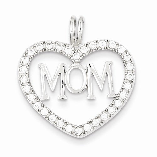 Sterling Silver CZ Heart MOM pendant