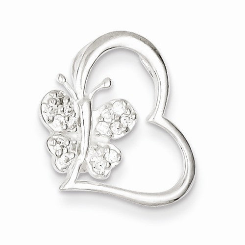 Sterling Silver CZ Heart with Butterfly Slide Pendant