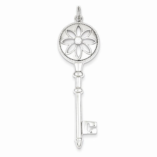 Sterling Silver CZ Key Pendant, Appealing Pendants for Necklace