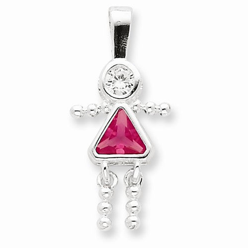 Sterling Silver CZ & October Pink CZ Girl Pendant