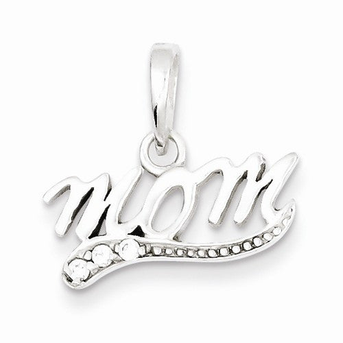 Sterling Silver CZ Polished Mom Pendant, Pendants for Necklace