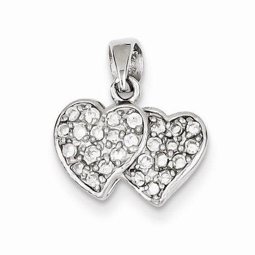 Sterling Silver CZ Small Double Hearts Pendant