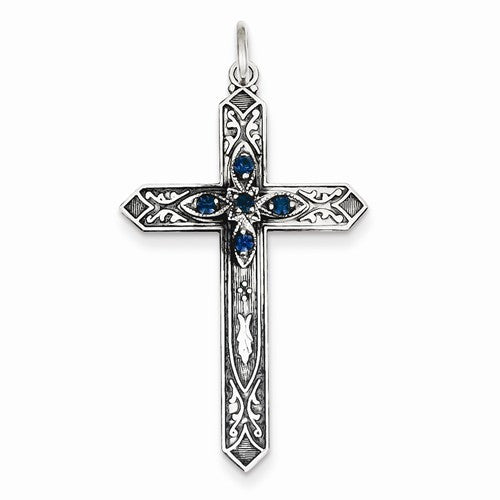Sterling Silver December Birthstone Cross Pendant