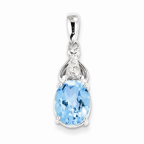 Sterling Silver Diamond and Blue Topaz pendant, Lovely Pendants for Necklace