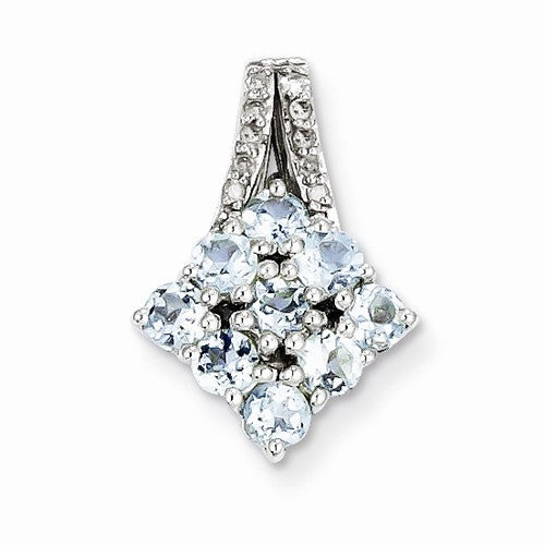 Sterling Silver Diamond & Aquamarine Square pendant, Exquisite Pendants for Necklace