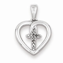 Sterling Silver Diamond Cross in Heart Pendant