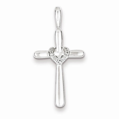 Sterling Silver & Diamond Cross with Heart Pendant, Pendants for Necklace