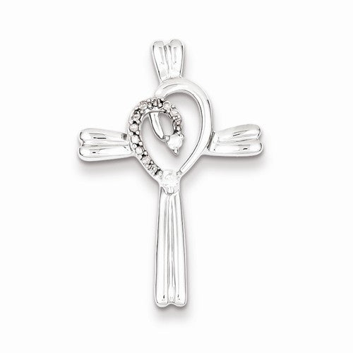 Sterling Silver Diamond Heart Cross Pendant, Pendants for Necklace