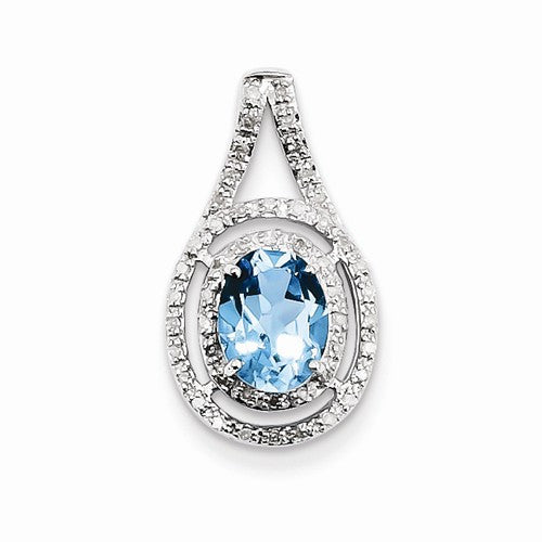Sterling Silver Diamond & Light Swiss Blue Topaz Oval Pendant