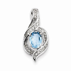 Sterling Silver Diamond & Light Swiss Blue Topaz Oval pendant