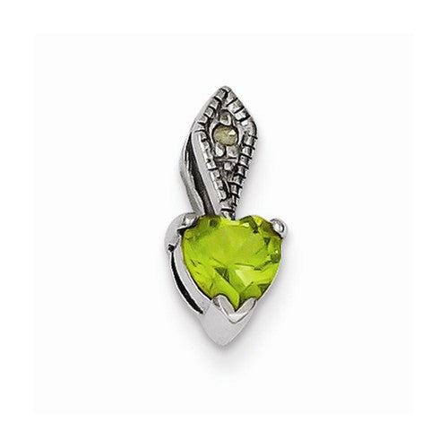 Sterling Silver Diamond & Peridot Heart Pendant