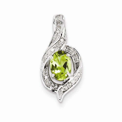 Sterling Silver Diamond & Peridot Oval pendant