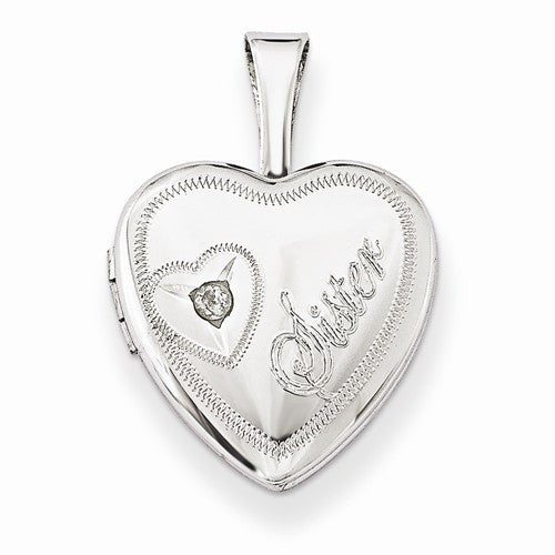Sterling Silver & Diamond Sister Heart 12mm Heart Locket