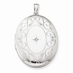 Sterling Silver & Diamond W/ Swirl Border 34mm Oval Locket