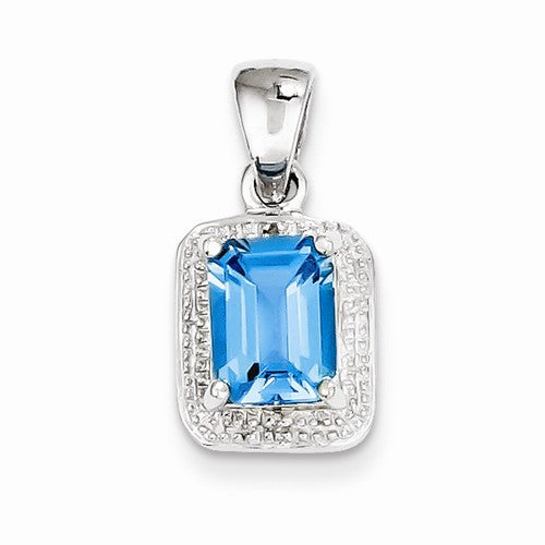 Sterling Silver Emerald-cut Lt Sw Blue Topaz & Diamond Pendant