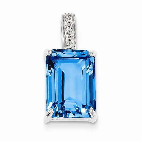Sterling Silver Emerald-cut Swiss Blue Topaz & Diamond pendant