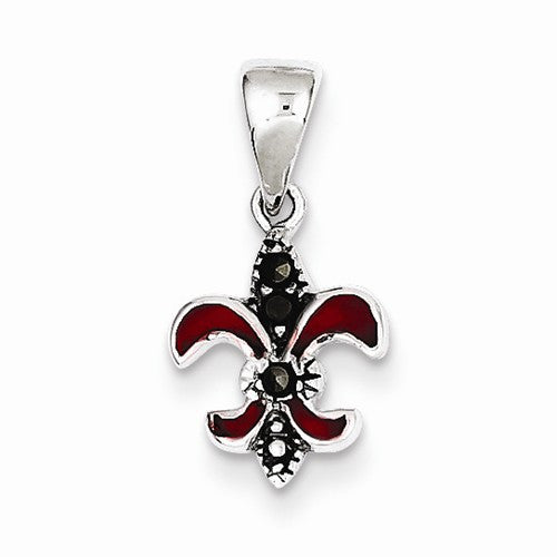 Sterling Silver Enameled Fleur de Lis Pendant, Pendants for Necklace