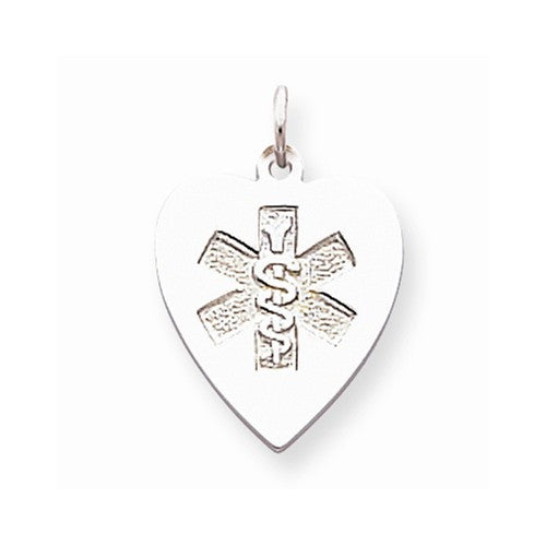 Sterling Silver Engraveable Non-Enameled Heart Medical pendant, Beautiful Pendants for Necklace