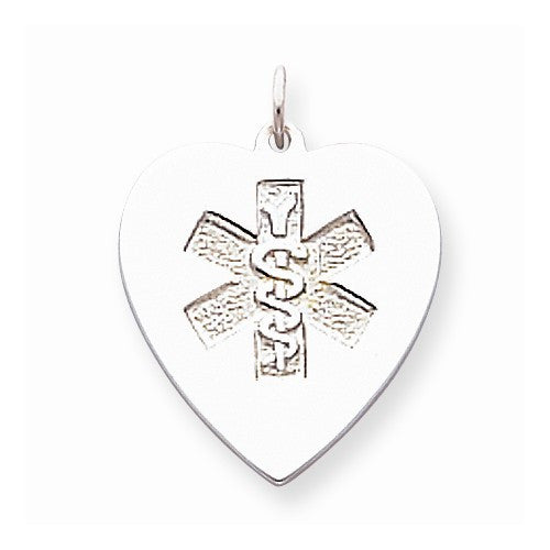 Sterling Silver Engraveable Non-Enameled Heart Medical pendant, Delightful Pendants for Necklace