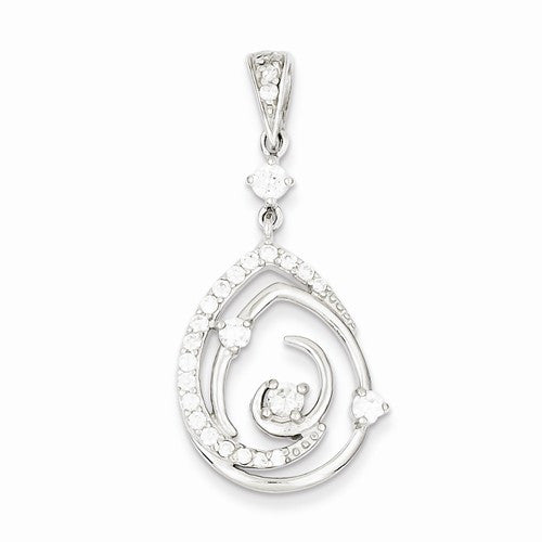 Sterling Silver Fancy Swirl w/ CZ Teardrop Pendant