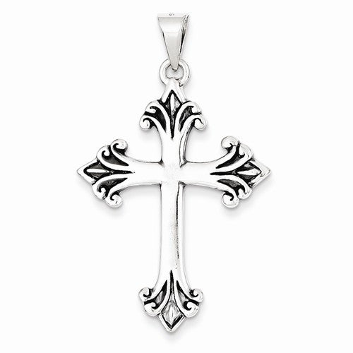 Sterling Silver Fleur De Lis Cross pendant, Charm
