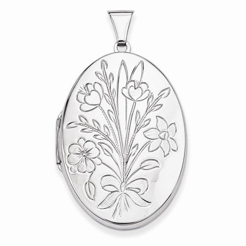 Sterling Silver Floral Bouquet Oval Locket