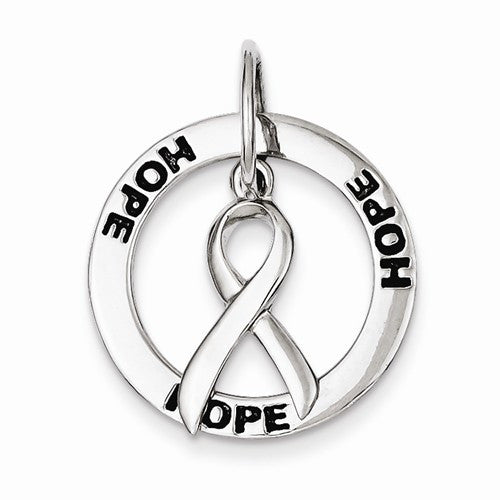 Sterling Silver Hope Circle & Cancer Awareness Ribbon Pendant