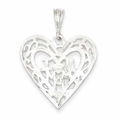 Sterling Silver I love you mom Heart Pendant, Pendants for Necklace