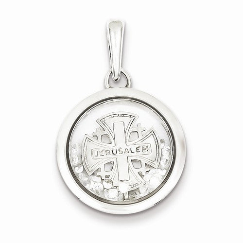 Sterling Silver Jerusalem Cross and Floating Glass Beads Pendant
