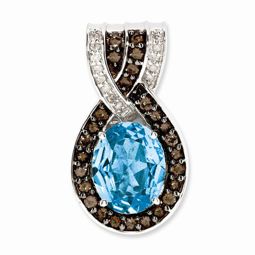 Sterling Silver Light Swiss Blue Topaz and Smokey Quartz & Diamond pendant