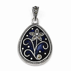 Sterling Silver Marcasite Blue Enamel Teardrop Flower Pendant