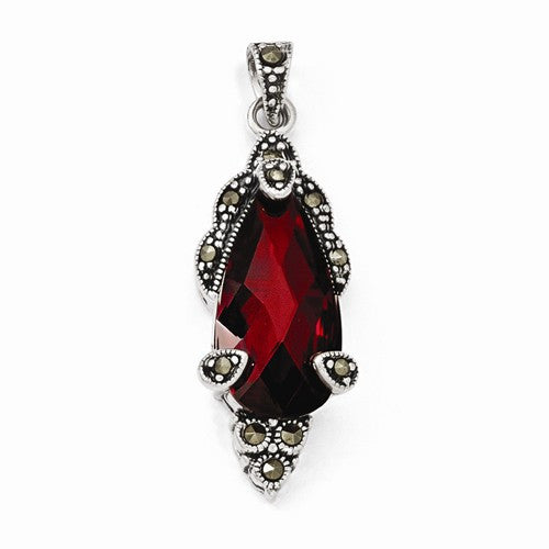 Sterling Silver Marcasite & Red CZ Pendant, Pendants for Necklace