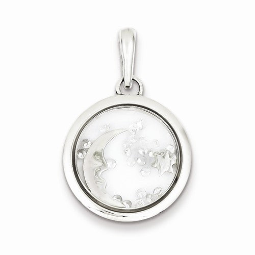 Sterling Silver Moon & Star and Floating Glass Beads Pendant