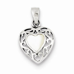 Sterling Silver Mother of Pearl Heart Antiqued Pendant