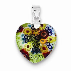Sterling Silver Multicolored Glass Polished Heart Pendant