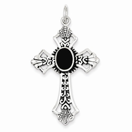 Sterling Silver Onyx Cross Pendant