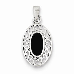 Sterling Silver Onyx Oval Antiqued Pendant, Pendants for Necklace