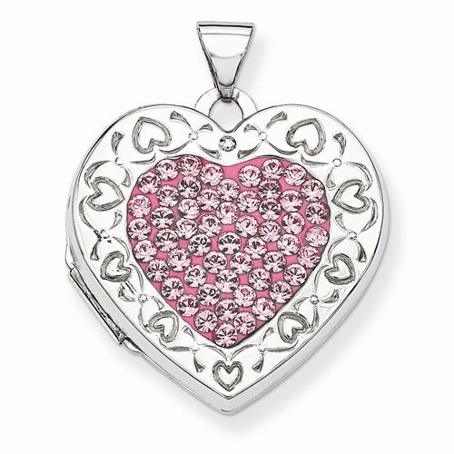 Sterling Silver Pave Pink Swarovski Elements 21mm Heart Locket